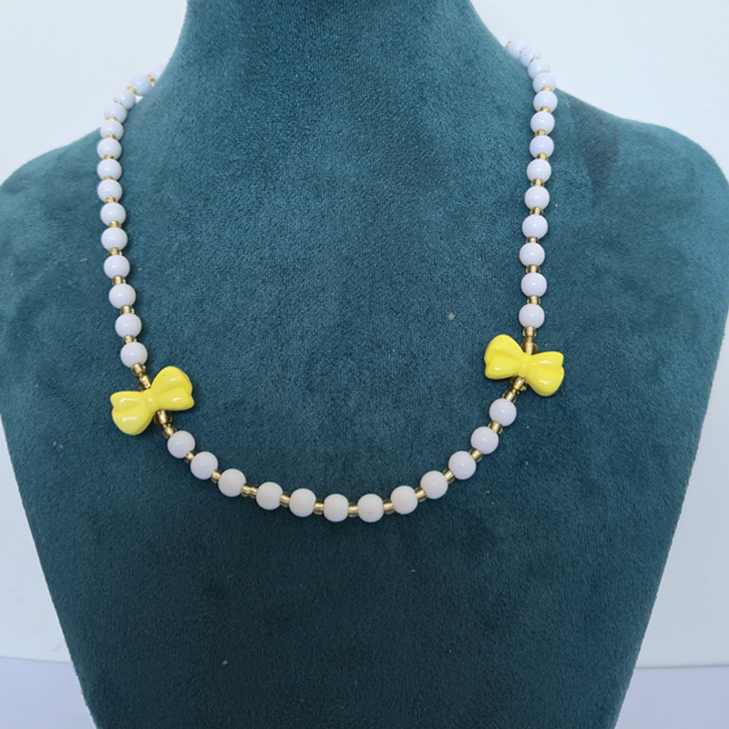 Collar Coquete – Perlas con dijes acrilicos amarillo Moña