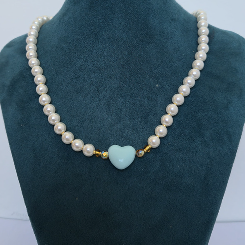 Collar Corazon – Perlas con Corazon Acrilico Celeste