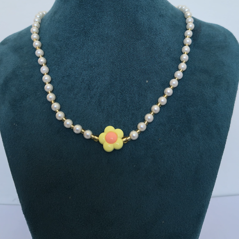 Collar Flor – Perlas con Flor Acrílico Amarilla y Naranja cantidad