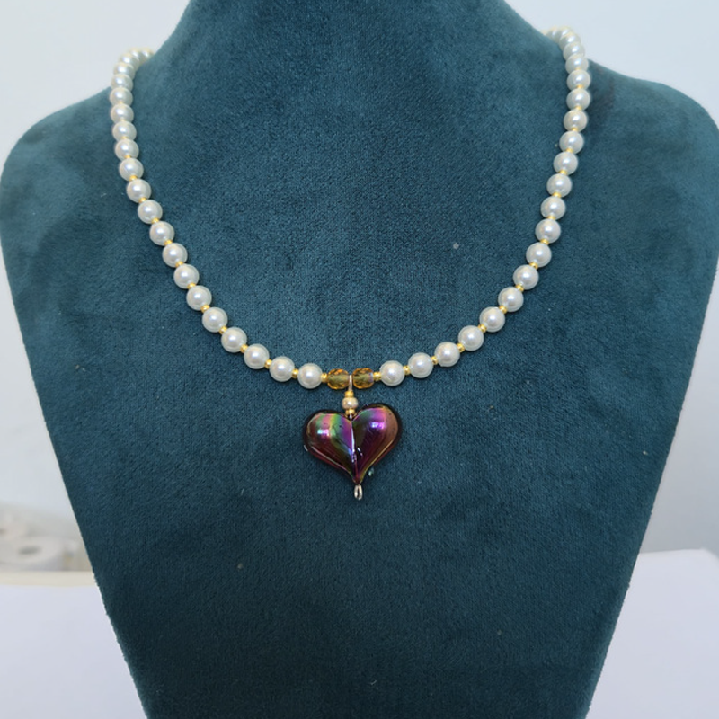 Collar Corazon – Mostacillas Vidrio y Corazon Acrilico Blanco