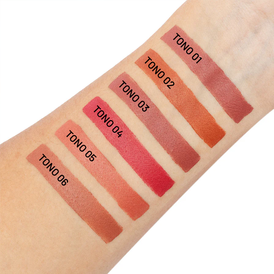 Son 6 labiales en barra con textura suave y ligera.