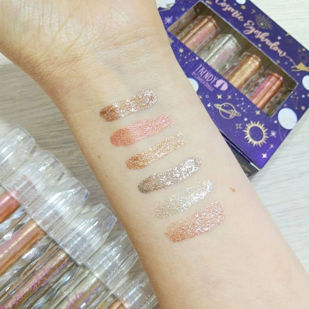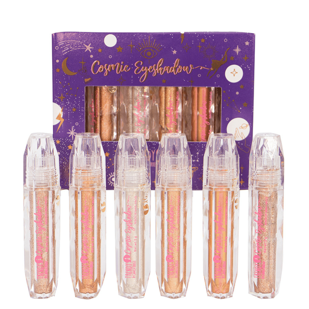 El Kit x 6 Sombras Líquidas Cosmic Trendy son súper fáciles de aplicar, vienen con glitter, de alta pigmentación y secado rápido. Tienen aplicador tipo labial.