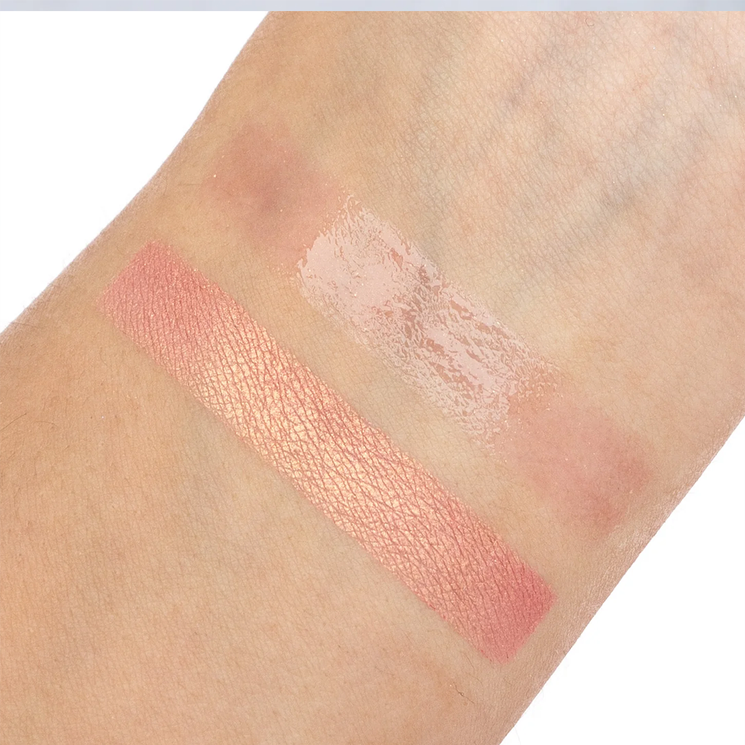• Viene un iluminador en coral con vistos dorados y un gloss rosa de textura ligera con efecto satinado.