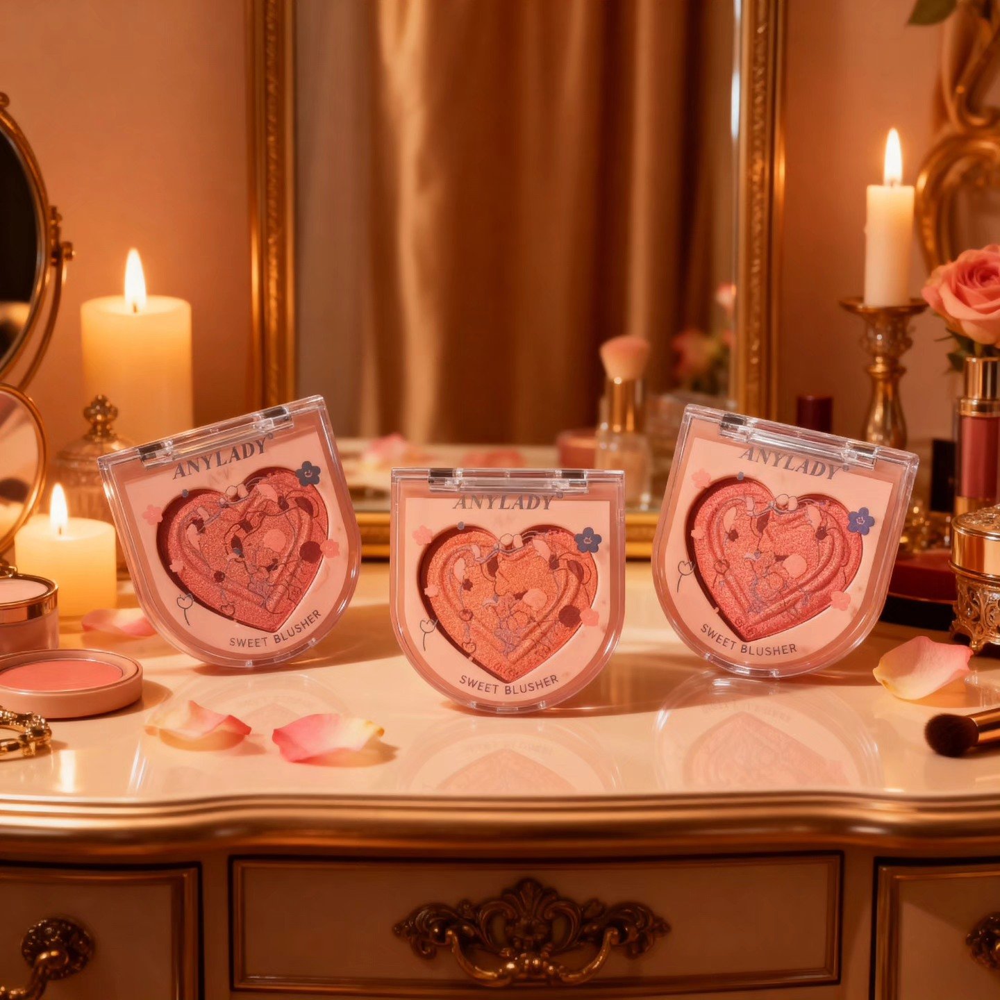 Rubor compacto con forma de corazón de la marca AnyLady, conocido como el modelo «Sweet Blusher».