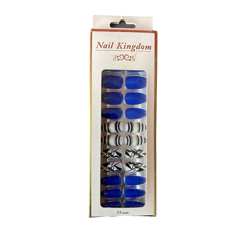 Set de 24 uñas – Nail Kingdom – Patrones y Azul